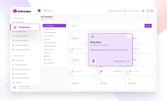 Increase the quality of your output by working with Chat by AIWriteBot prebuilt prompts. This helps you guide our software to better content and Choose from emails, social posts, long-form blog posts, and more!