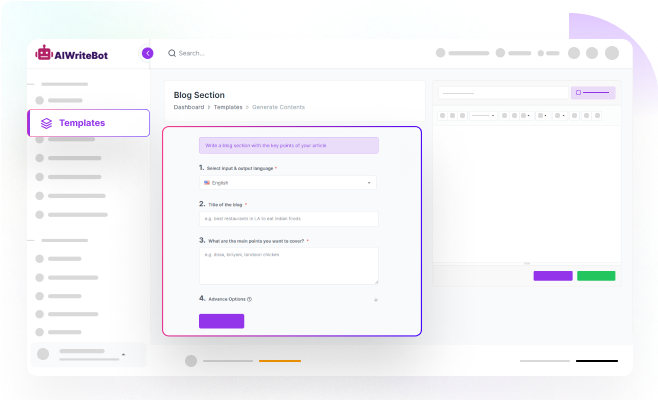 - Write or select AIWriteBot prebuilt prompts